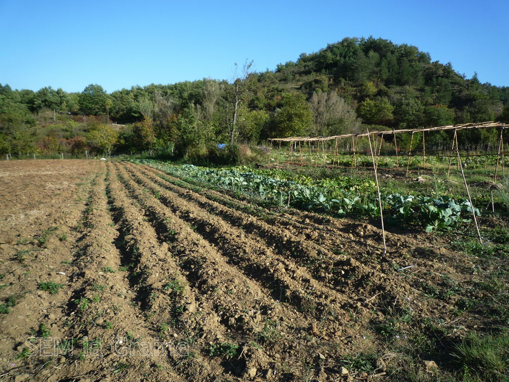 Nous avons choisi de cultiver sur buttes car cela favorise la vie bactérienne des sols très importante pour les racines et la santé de la terre.Une butte se monte en plusieurs fois afin de ne pas perturber brutalement l’équilibre des sols. Cela demande une régularité dans le travail tout au long de l’année.